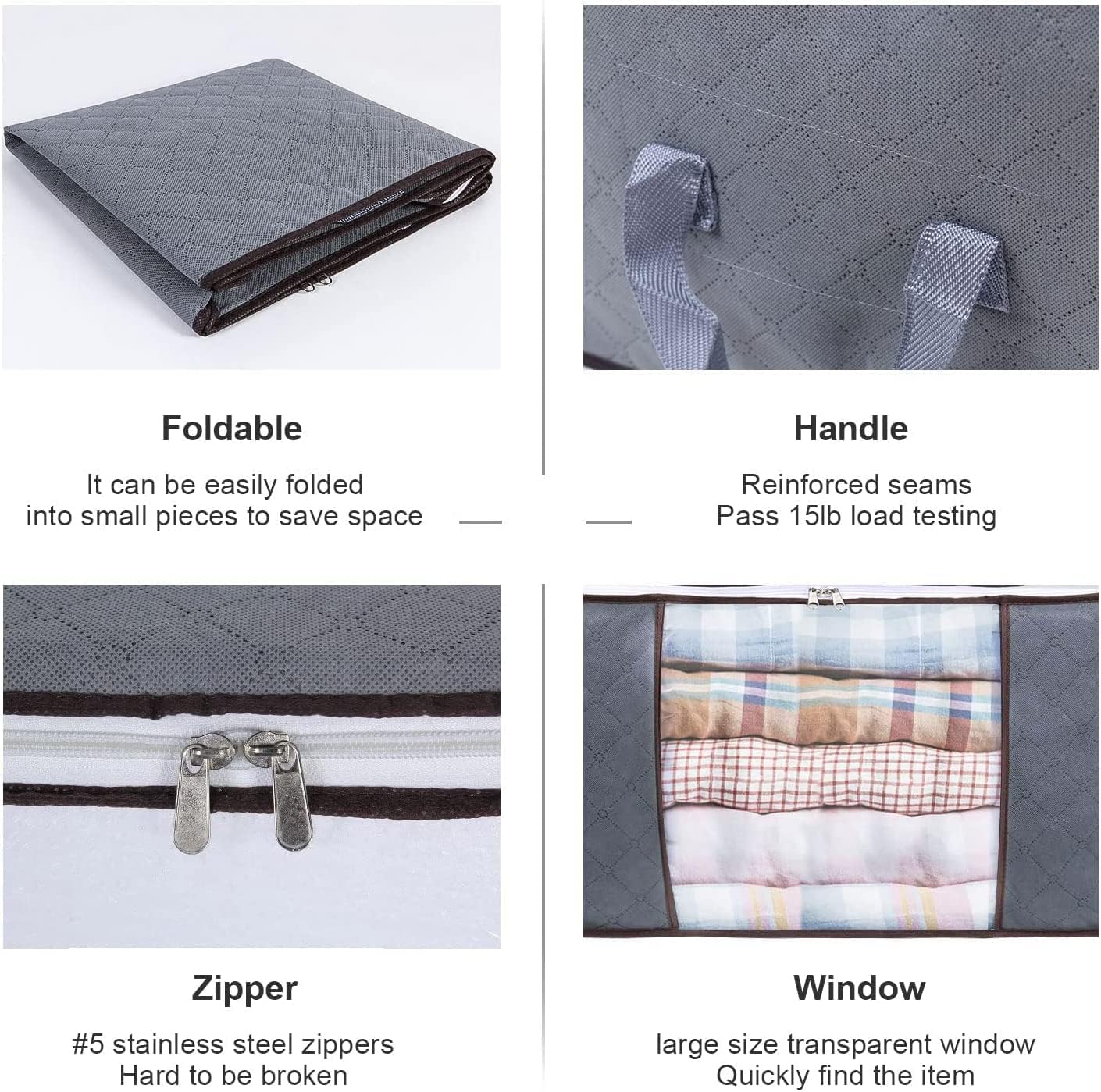 - Large Capacity: Each storage bag measures 60 x 43 x 35 cm, with capacity 90L. It is spacious for your comforters, blankets, pillows, plush toys, jackets or other clothes.
