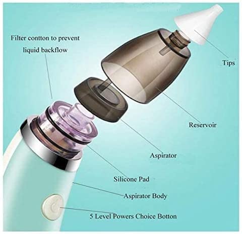 - SAFE AND RELIABLE: 5 levels of suction power and 2 sizes of soft reusable silicone nose tips in electric nose cleaner, provide perfect suction for every size nose while not harming your baby's delicate sinuses.
