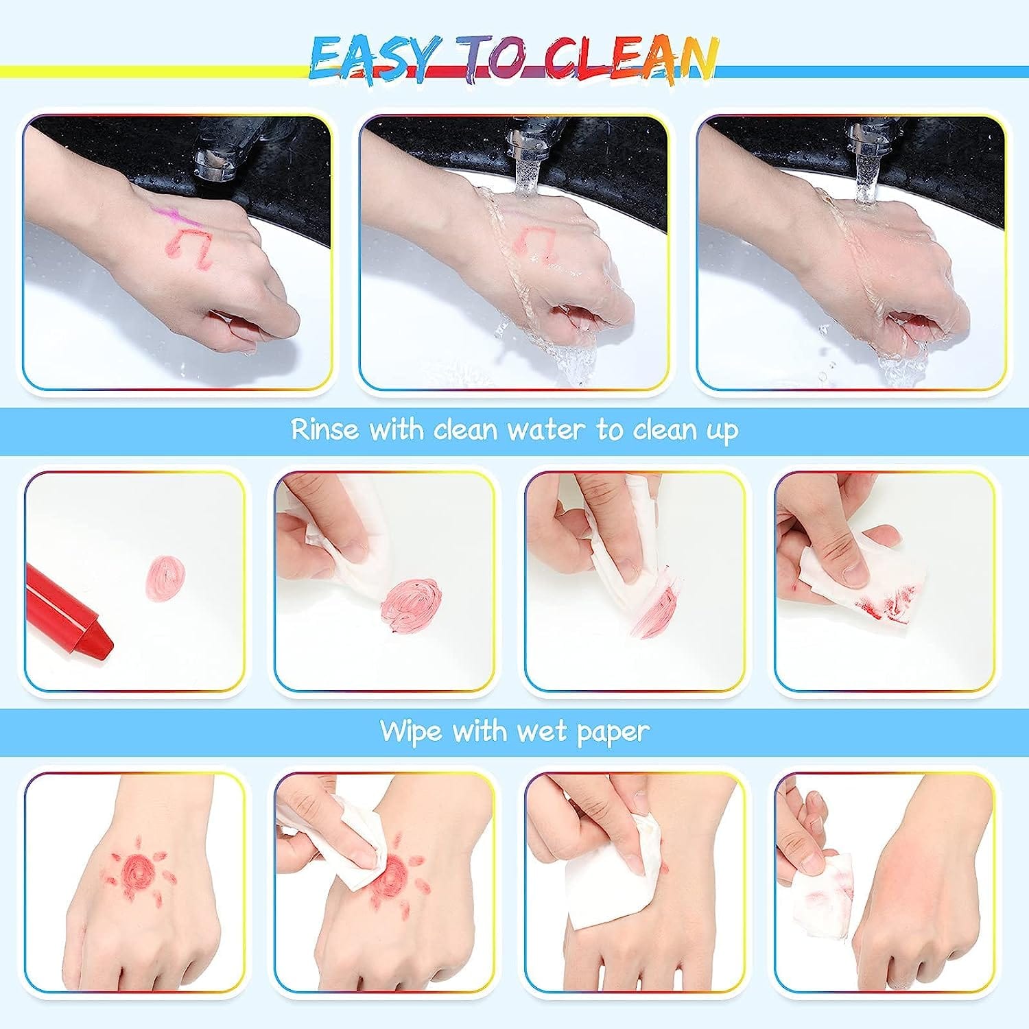 • There are no nasty ingredients in these face painting crayons, which makes them very easy to remove makeup, just use regular makeup remover wipes to wipe the skin, which can save you time and energy