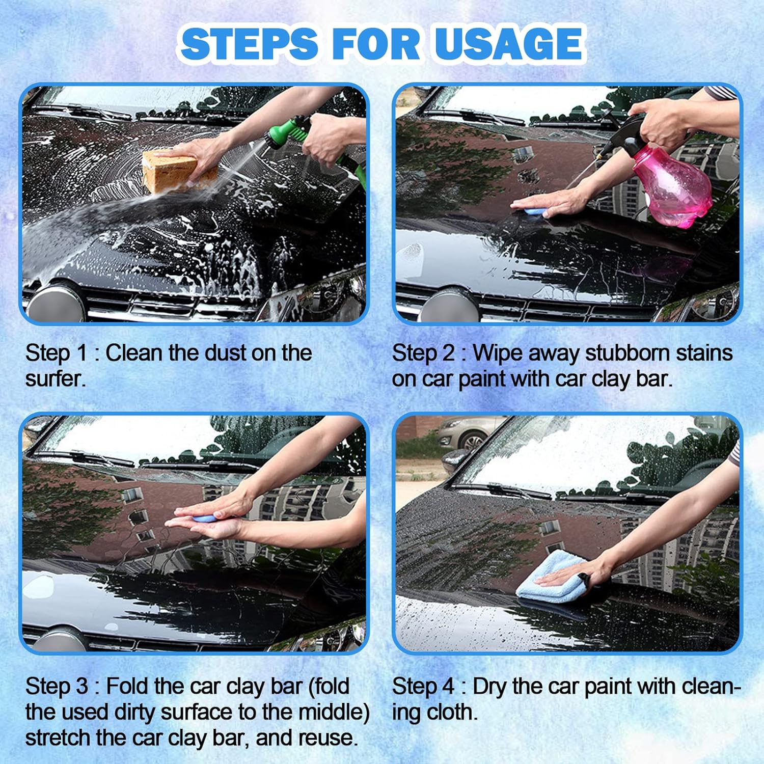 - Easy & Convenient Operate: Put the clay bar for car detailing in water for a while before use, add detergent, knead it to the right shape, and then you can start cleaning the car paint. Dry naturally after use, then wrap the magic clay bar in clean plastic wrap or plastic bag to keep it fresh. You can continue to reuse it next time. Be careful not to drop it on the ground to prevent it from getting dusty. (The wash bar is easy to shape and won't lose or stick to hands).