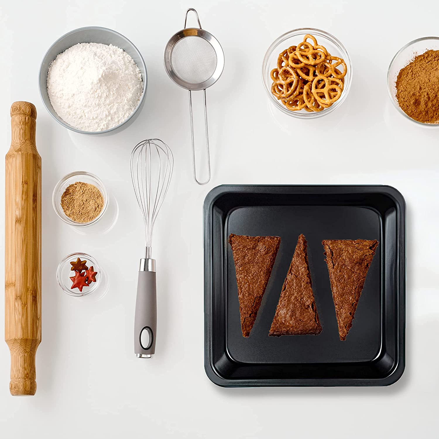 - Each pan in this set is designed with a durable non-stick coating that ensures easy release of baked goods and makes cleaning a breeze. The carbon steel construction guarantees even heat distribution for consistent baking results every time. The deep baking tray is perfect for creating large and deep cakes, ensuring that your cakes will be cooked to perfection.