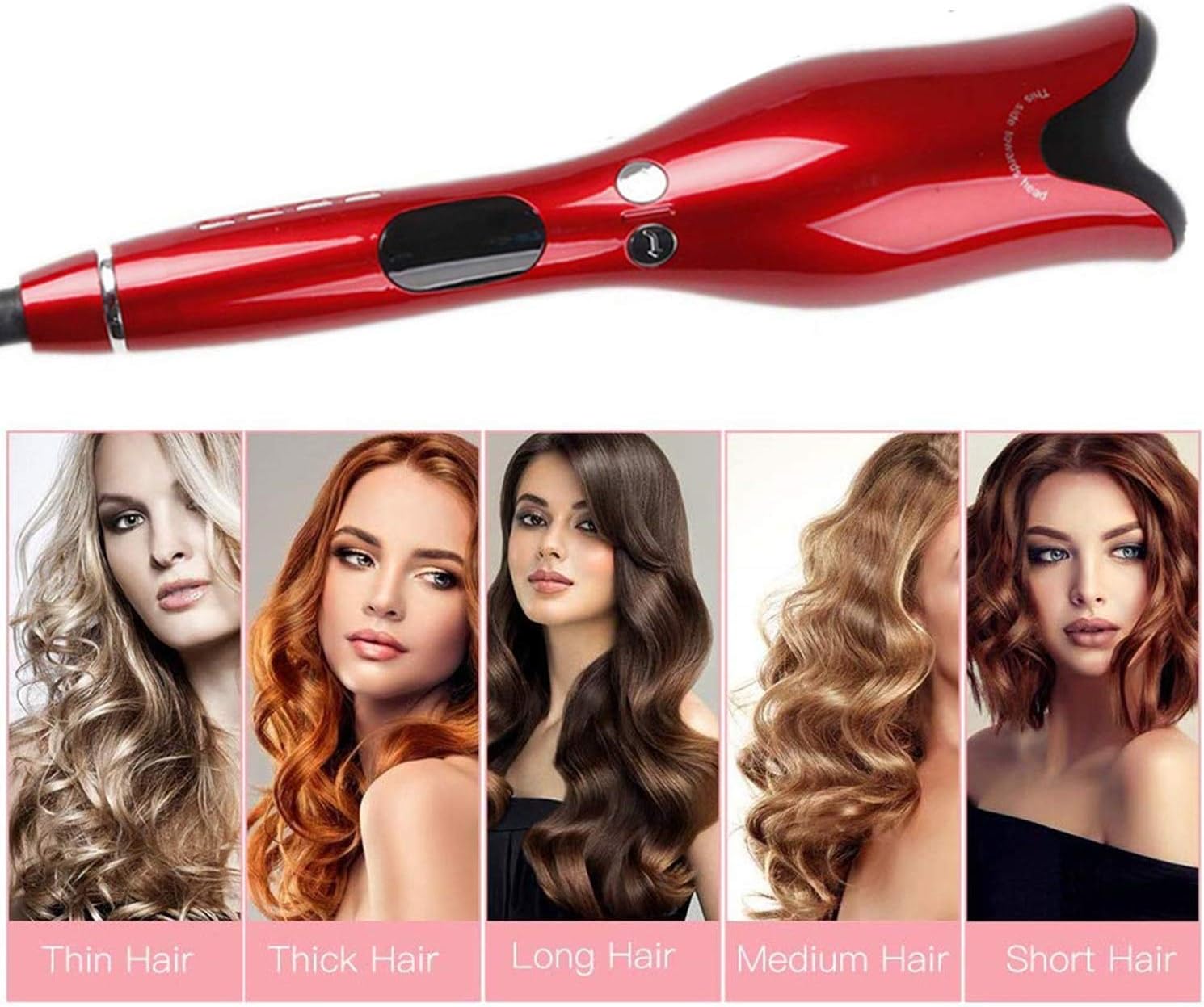 LCD Hair Curler 1 - Red, EU Plug, Automatic Spin & Curl Wand