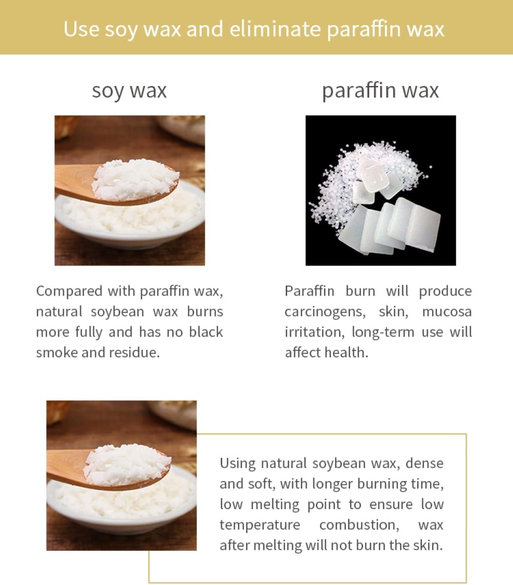 - Made with 100% soy wax, premium fragrance essential oils, which offers stronger aroma. The wick is made from lead free cotton and will smoke free when ignited smells amazing, it's clean enough for all ages.