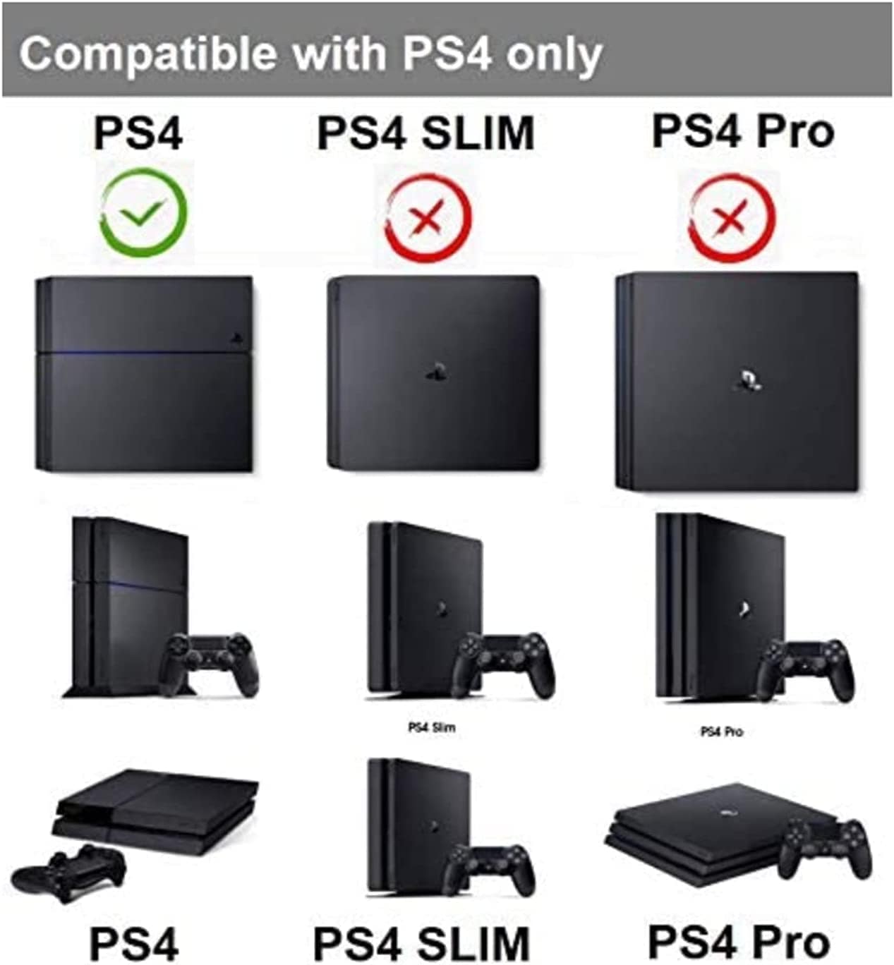 - For PS4 vertical space saving support designed for the PlayStation 4 only, can't support PS4 Slim or PS4 Pro.