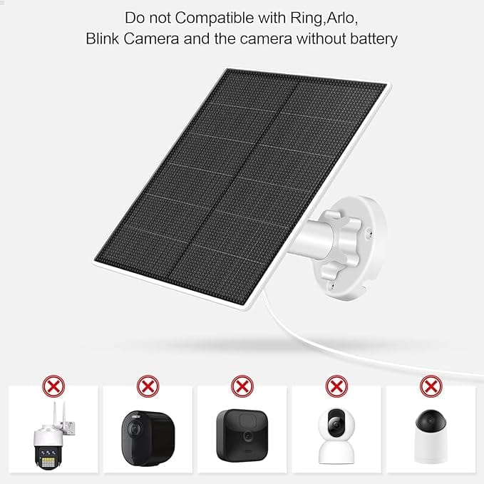 - Keep your security cameras powered with this 5W solar panel charger that's compatible with most Micro USB port cameras. (Not compatible with Ring, Arlo, or Blink cameras.)