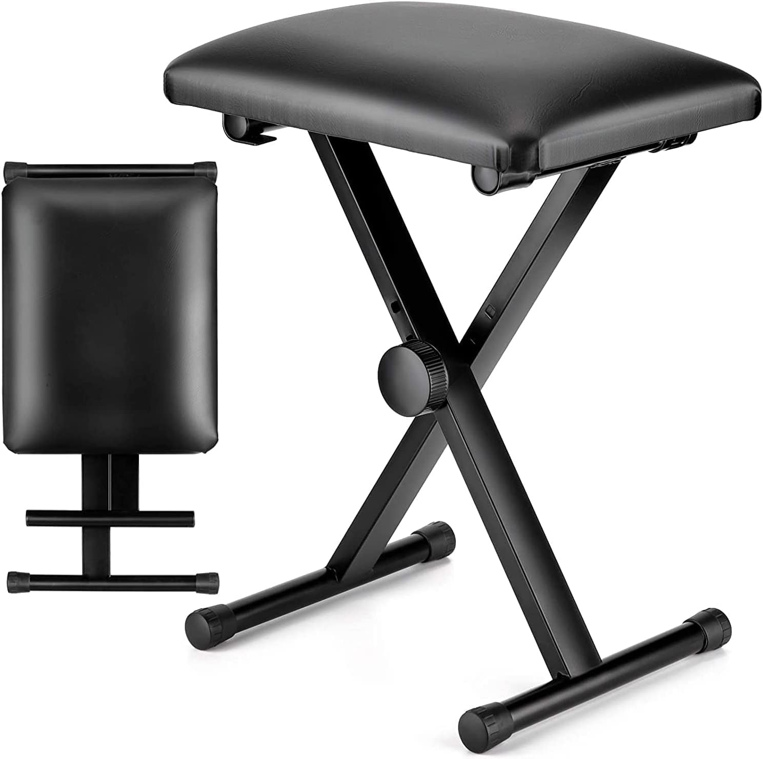 • Great Stability - The keyboard bench has a heavy-duty X style, making it extremely steady. Non-slip rubber end caps prevent any movement and protecting floors.