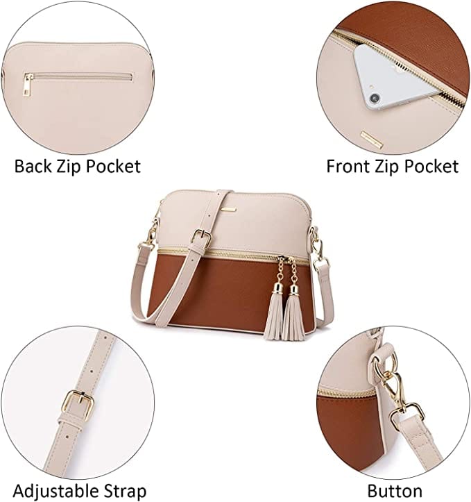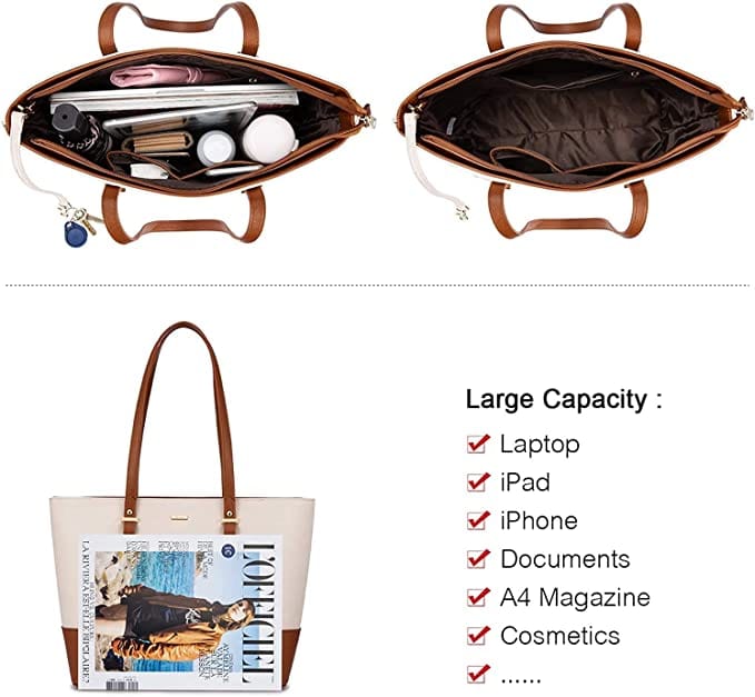 - Elegant handbag set for women, classic design in a rich brown and white color scheme, offering a variety of compartments to make it multipurpose!