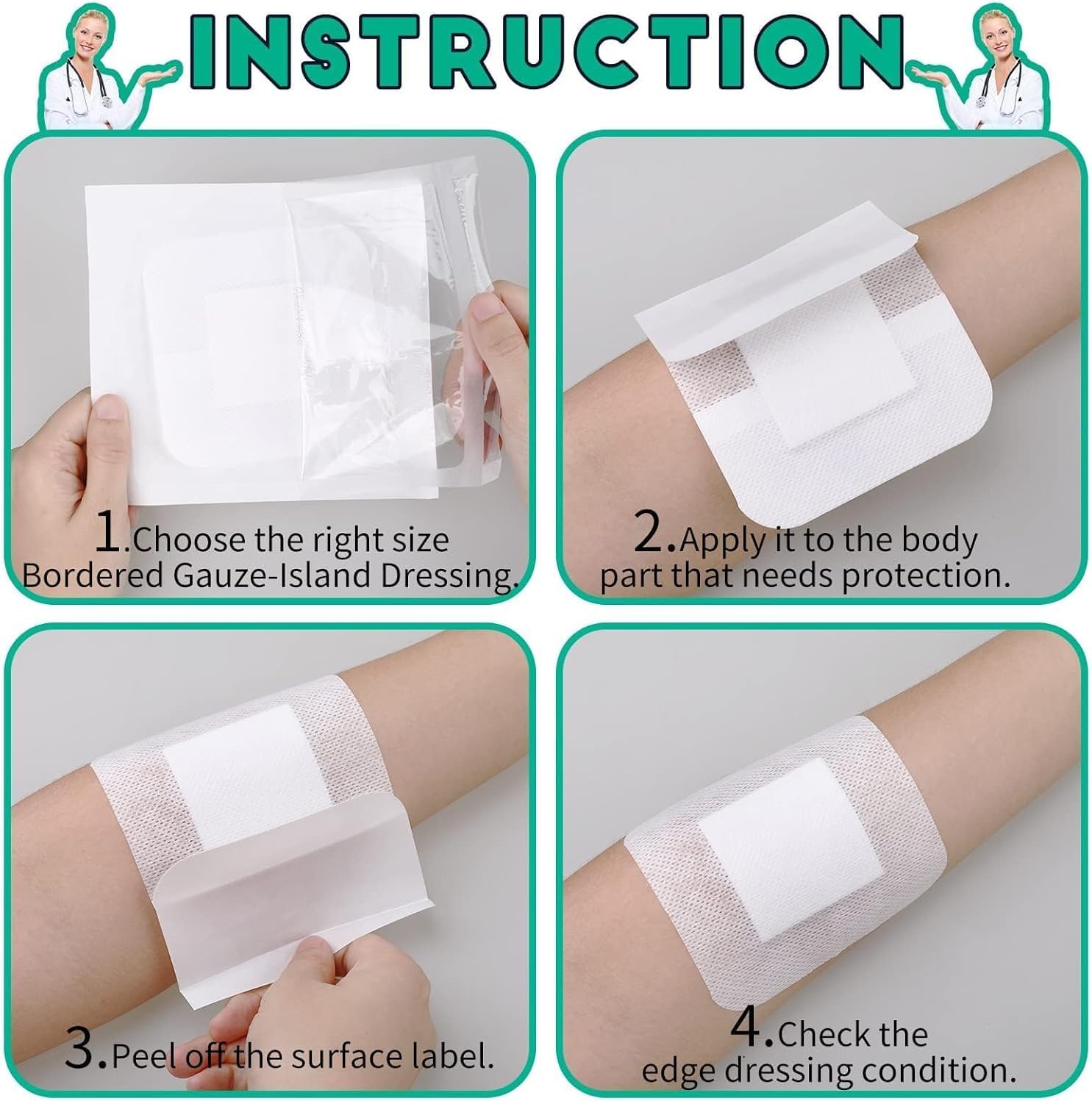 DUBKART 20 PCS Waterproof Adhesive Gauze Pads: 4x4 Inch Bordered Bandages for Wound Care