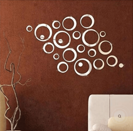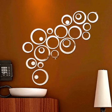 - Eco-friendly acrylic circle mirror set. Just tear off the front protective film then stick them to wall, you can use blades, needles, etc. Please be careful!