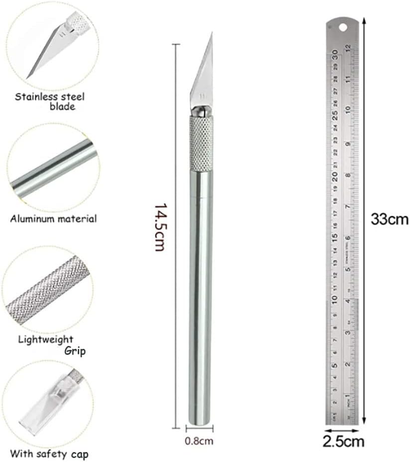 - The Craft cutting DIY self-healing mat comes with crafting knife with safety cap and easy to hold grip and a stainless-steel ruler 30 cm.
