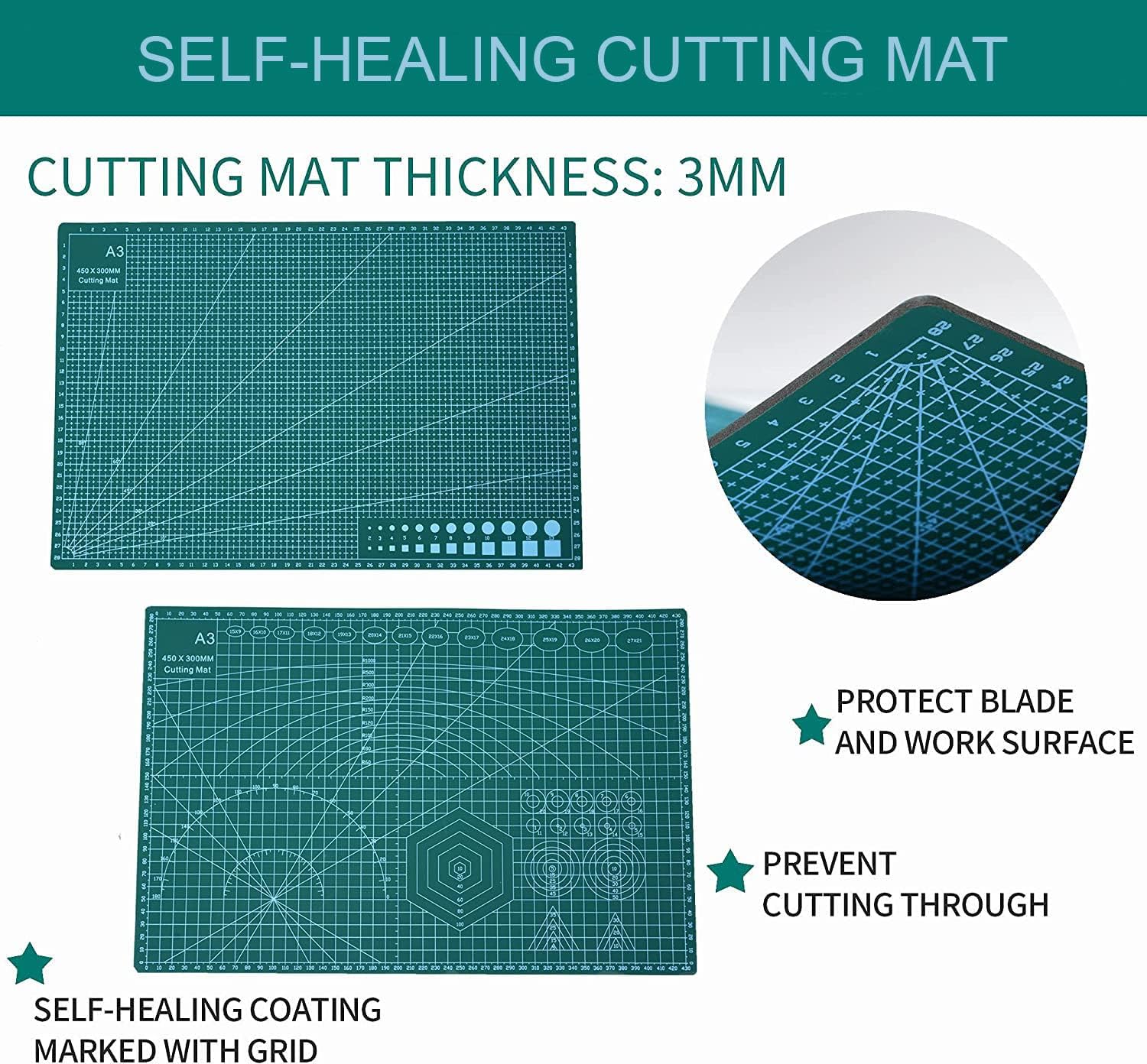 - CLOUDFOUR Self-Healing craft cutting mat, Rotary double sided cutting board with craft carving tool and ruler. A3 Cutting Mat for Arts and Crafts, Sewing, Quilting and Scrapbooking projects.