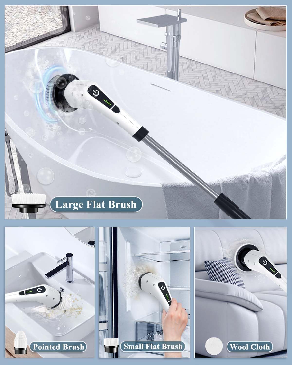 • Electric Spin Scrubber lets you say goodbye to traditional cleaning tools. Our electric cleaning brush helps you do housework with the most relaxed posture. Get more convenience from technology and say goodbye to back and knee pain, also, save your body. It is a worthwhile investment and an ideal gift for parents and friends.
