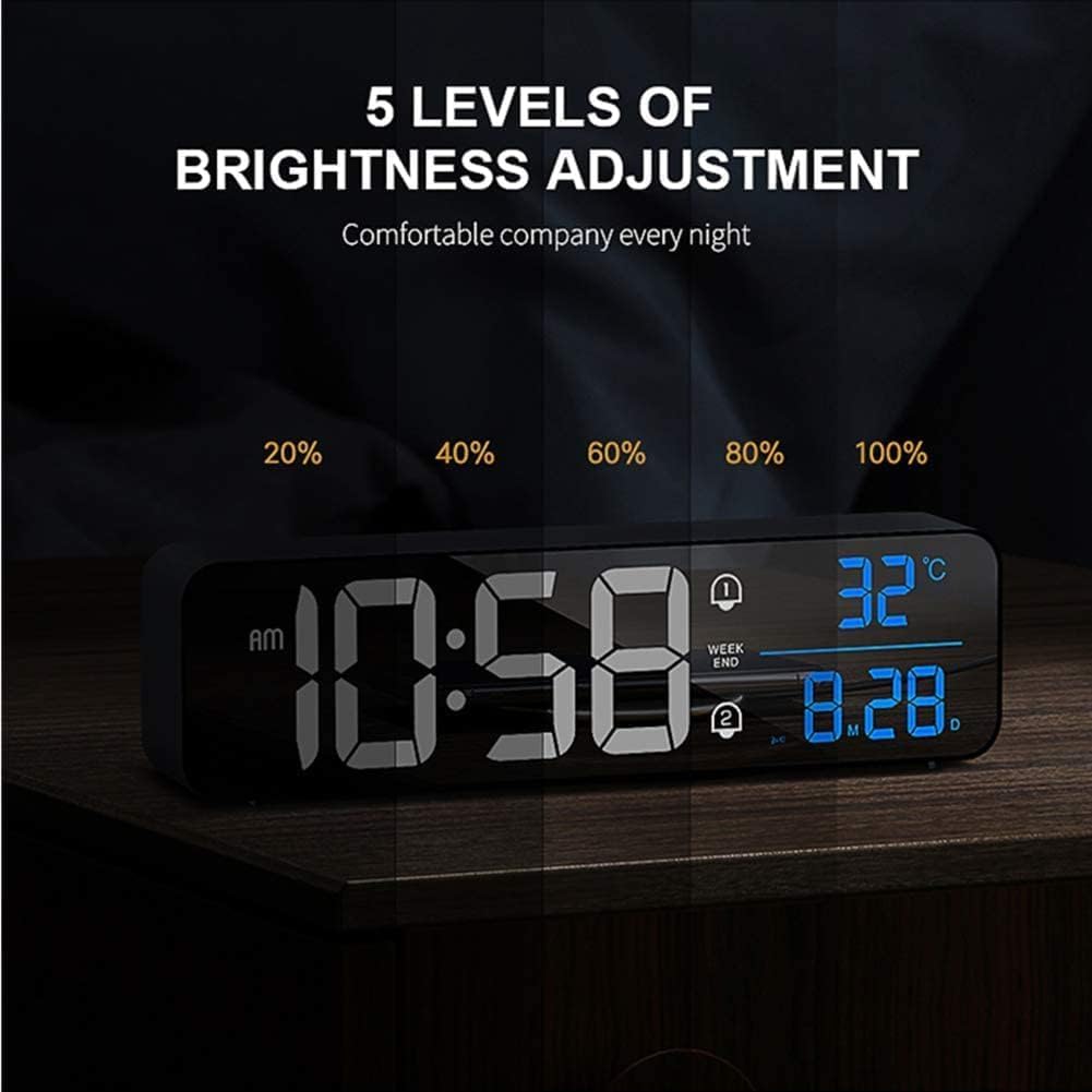• Touch the button of the alarm clock to adjust the brightness of 5 levels, It also can automatically convert brightness in different time period, smart to provide you with the needs.