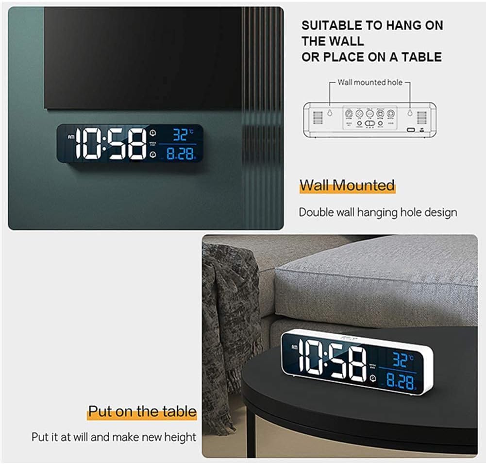 • This Stylish and simple mirror alarm clock can decorate your bedroom, living room, office, dorms. And it is also the best gift for kids, partner and the elderly. Attention: There is no plug, please connect with the USB port or ONLY 5V/1A and 5V/2A adapter to charge the clock. Voice activation is recommended if you do not want to connect to the power supply.