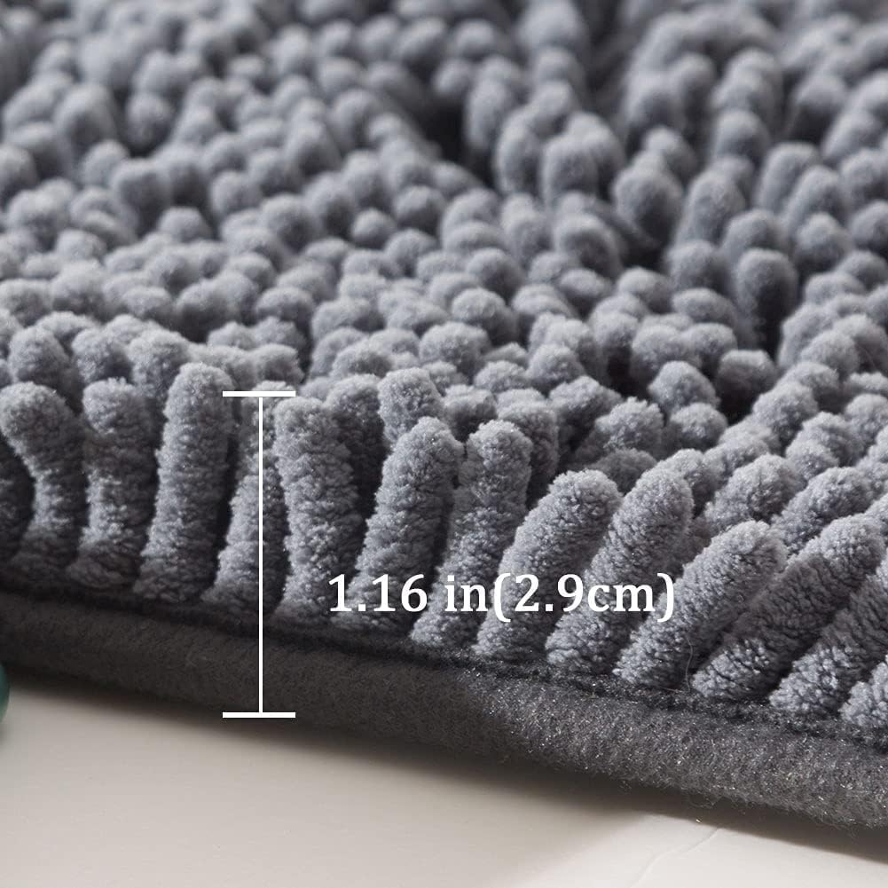 - Ultra Absorbent - THMINS Bathroom mats are made of thousands of ultra-soft individual microfiber shags. The thick chenille fabric absorbs water quickly to help save your floors from dripping water while you're getting out of the bath, shower or getting ready by the sink; Moisture is trapped in the mat's 1.16'' deep piles, allowing the bath rug to dry quickly and cleanly.