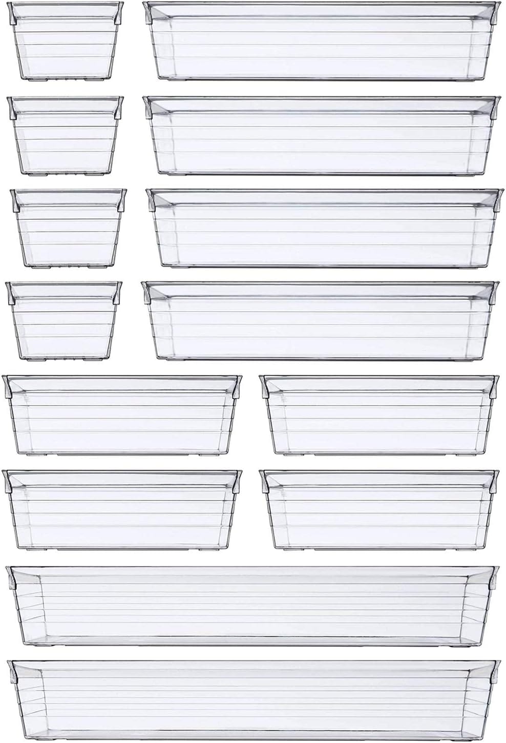 14 PCS Clear Plastic Drawer Makeup Closet Organizer Trays
