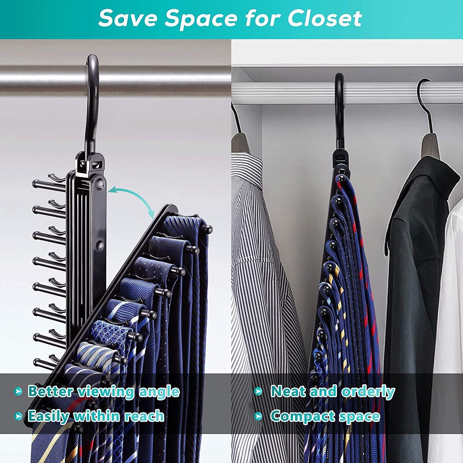 - The hook of the hanger is 360 degree rotatable. It will make it easy to select a tie from the bunch.