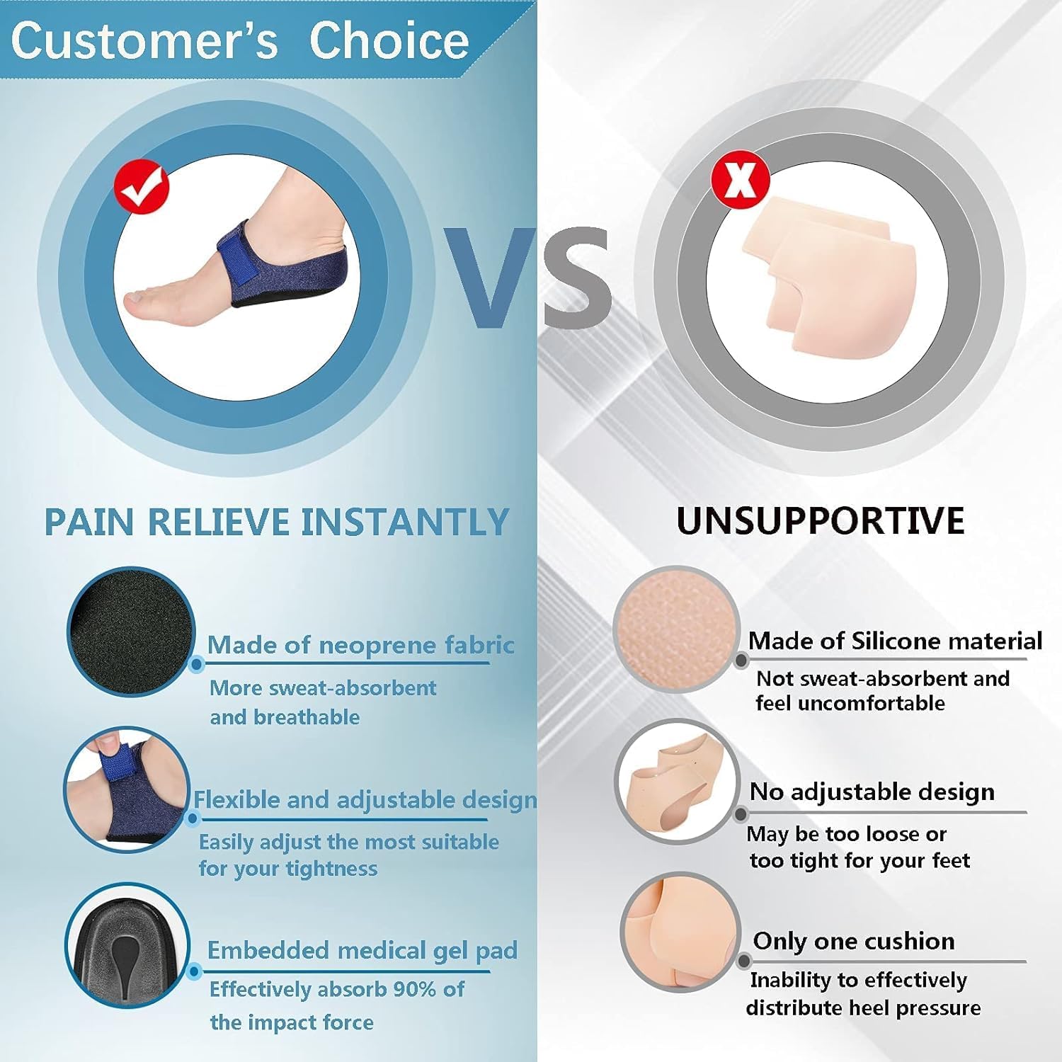 - HEEL PAIN RELIEF The heel cover can effectively absorb 90% of the impact force and supports the heel, relieve the heel pain & discomfort when walking. Ideal nonsurgical treatment for person suffering from Plantar Fasciitis, Tendonitis, Bone Spurs, Aching Feet, Stress Fractures and Sprained Feet.