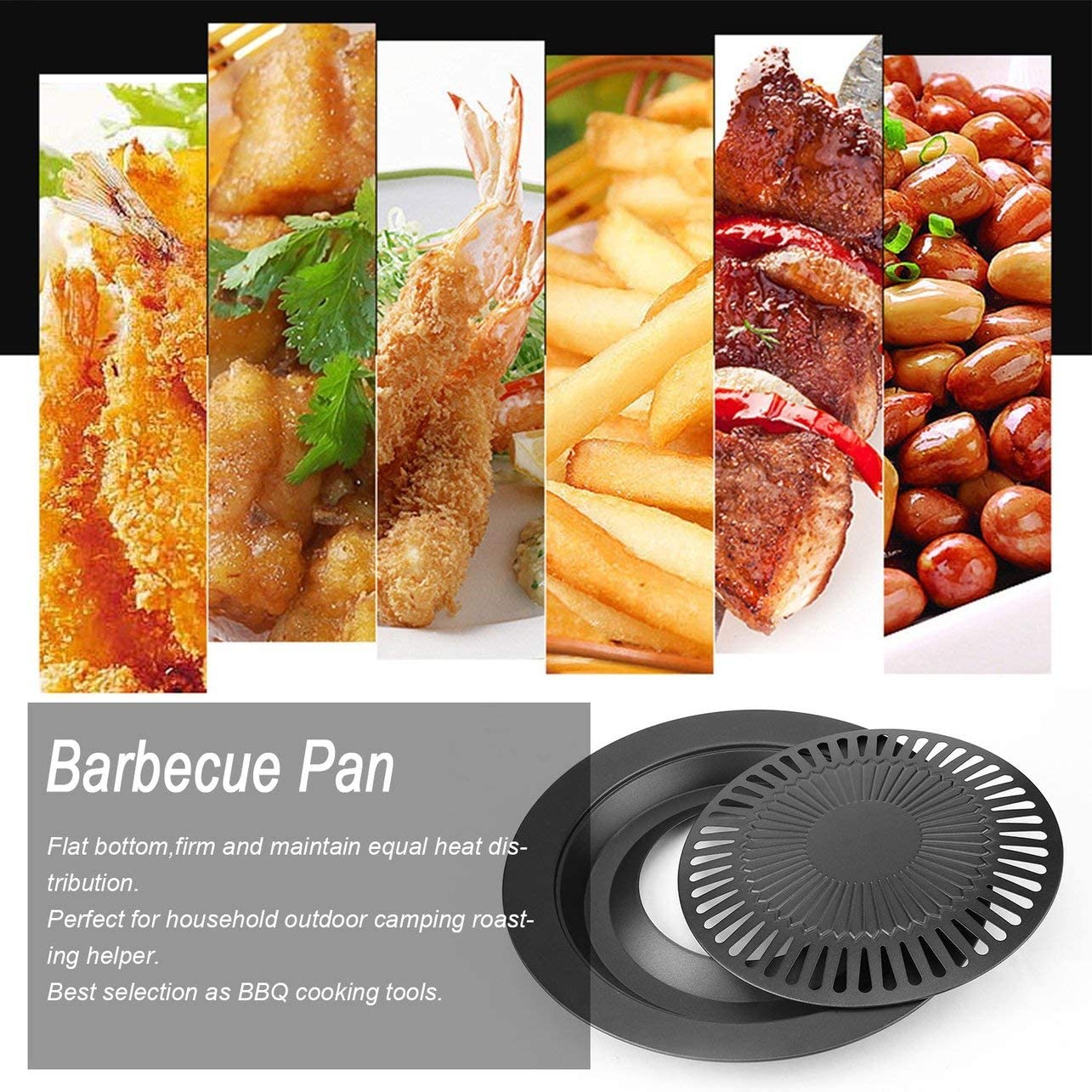 • Round Indoor BBQ Smokeless Pan Roasting Tray Kitchen Roast Cooking (Black)