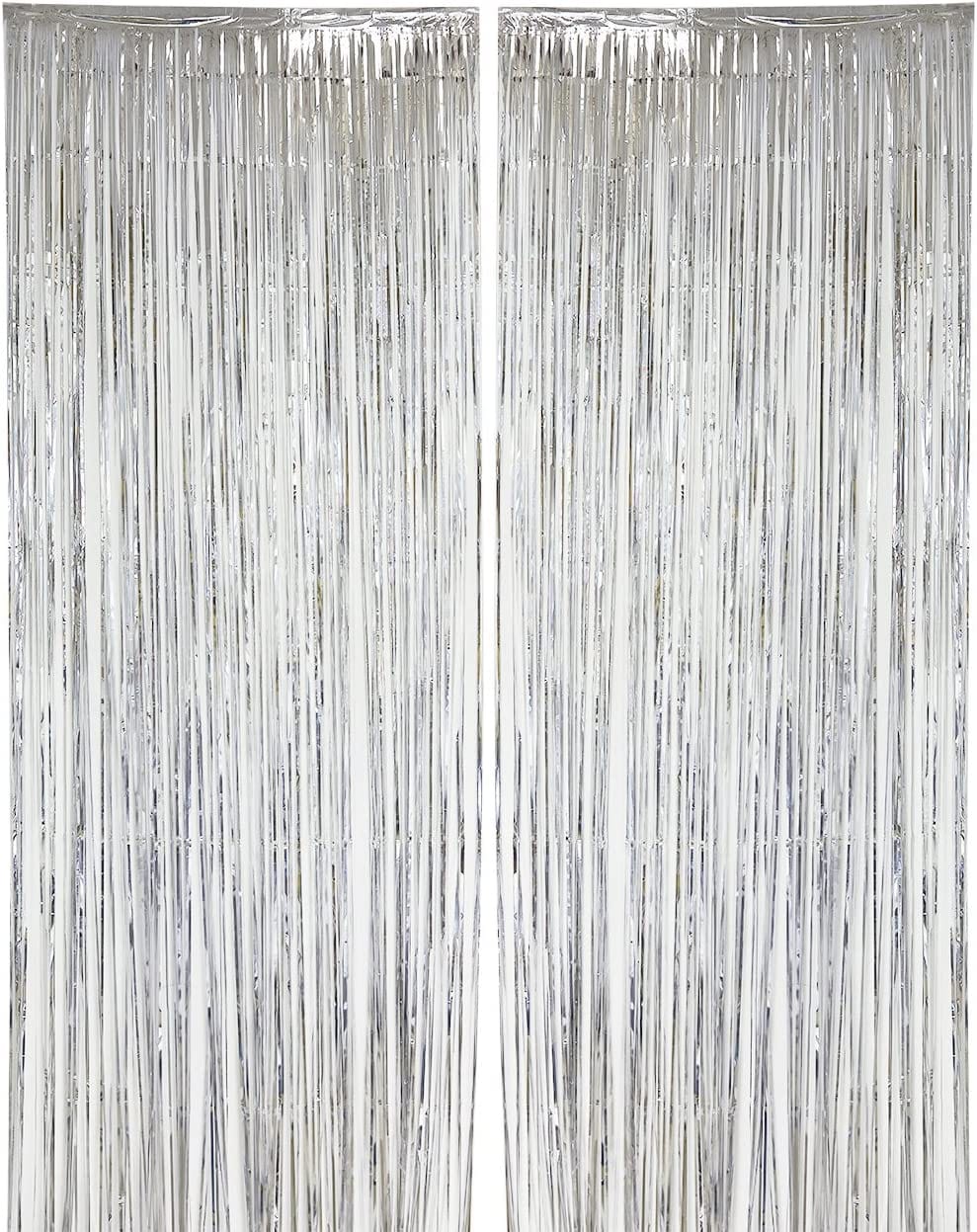 2 PCS Silver Fringe Curtains Wedding Birthday Party Photo Booth Background