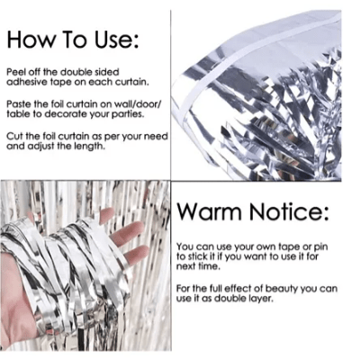 • Whether you're looking to add a touch of elegance to your wedding or create a fun and festive atmosphere for a birthday party, these Silver Fringe Curtains are the perfect party prop. Don't miss out on this must-have decoration set!