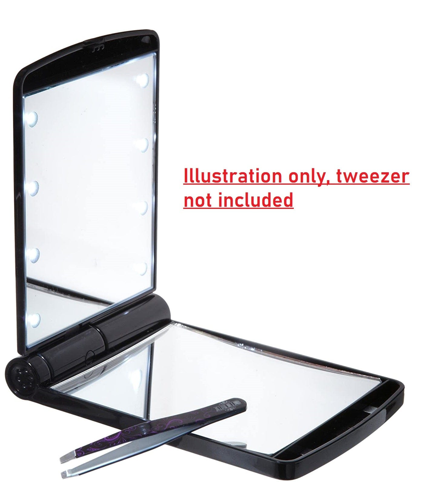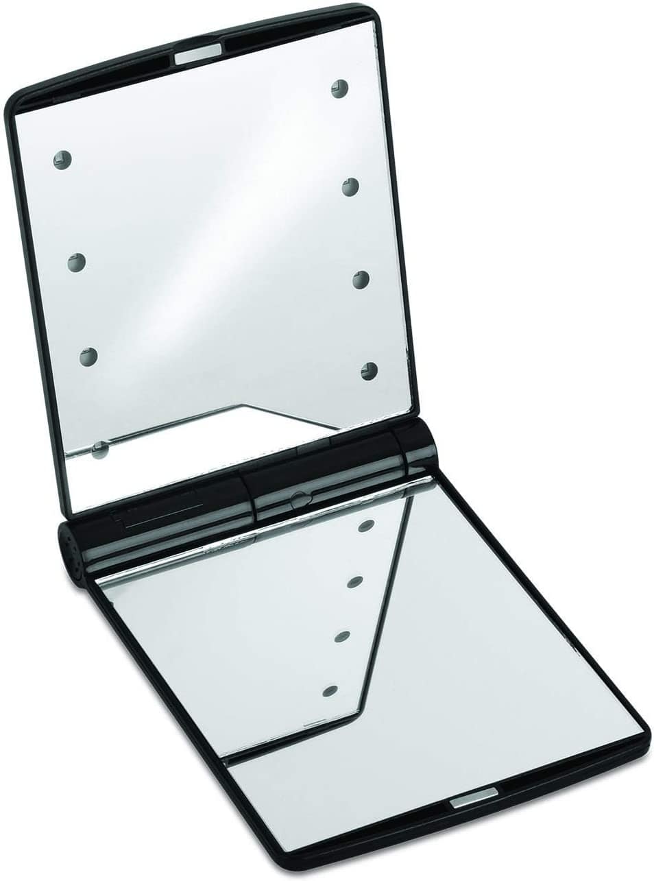 - LED Lighted Pocket Makeup Bright Compact Travel Portable Cosmetics Vanity Handbag Mirror 8 LEDs With Magnet Lock (Black)