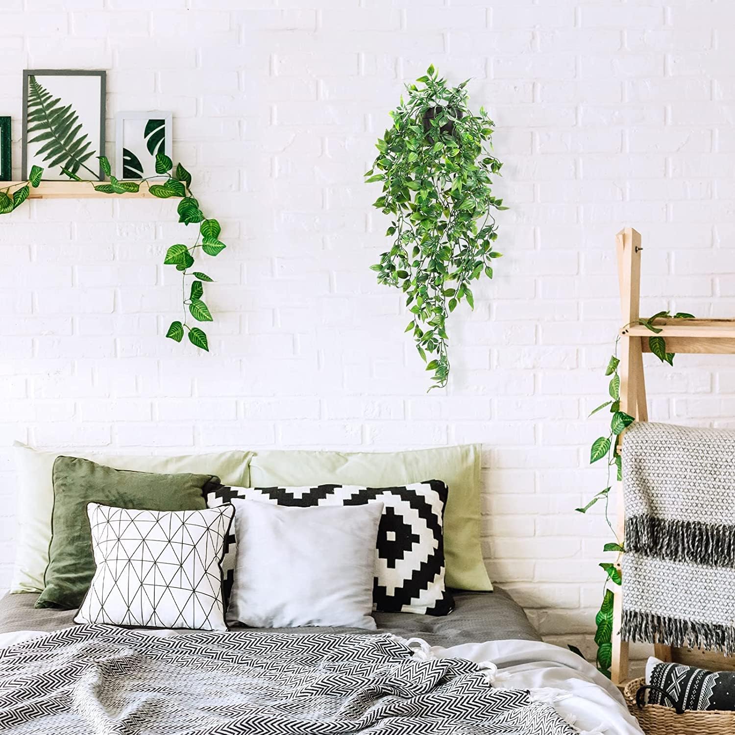 - Exquisite & Ideal Gifts: As a perfect gift to share with your friends/family, fake hanging plants look very real with green leaves. can bring bright green all the years, we can put fake plants on the bookshelf, desks, offices, party weddings, to decorate walls indoors and outdoors.