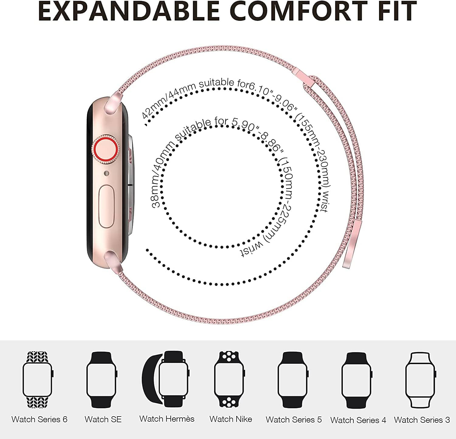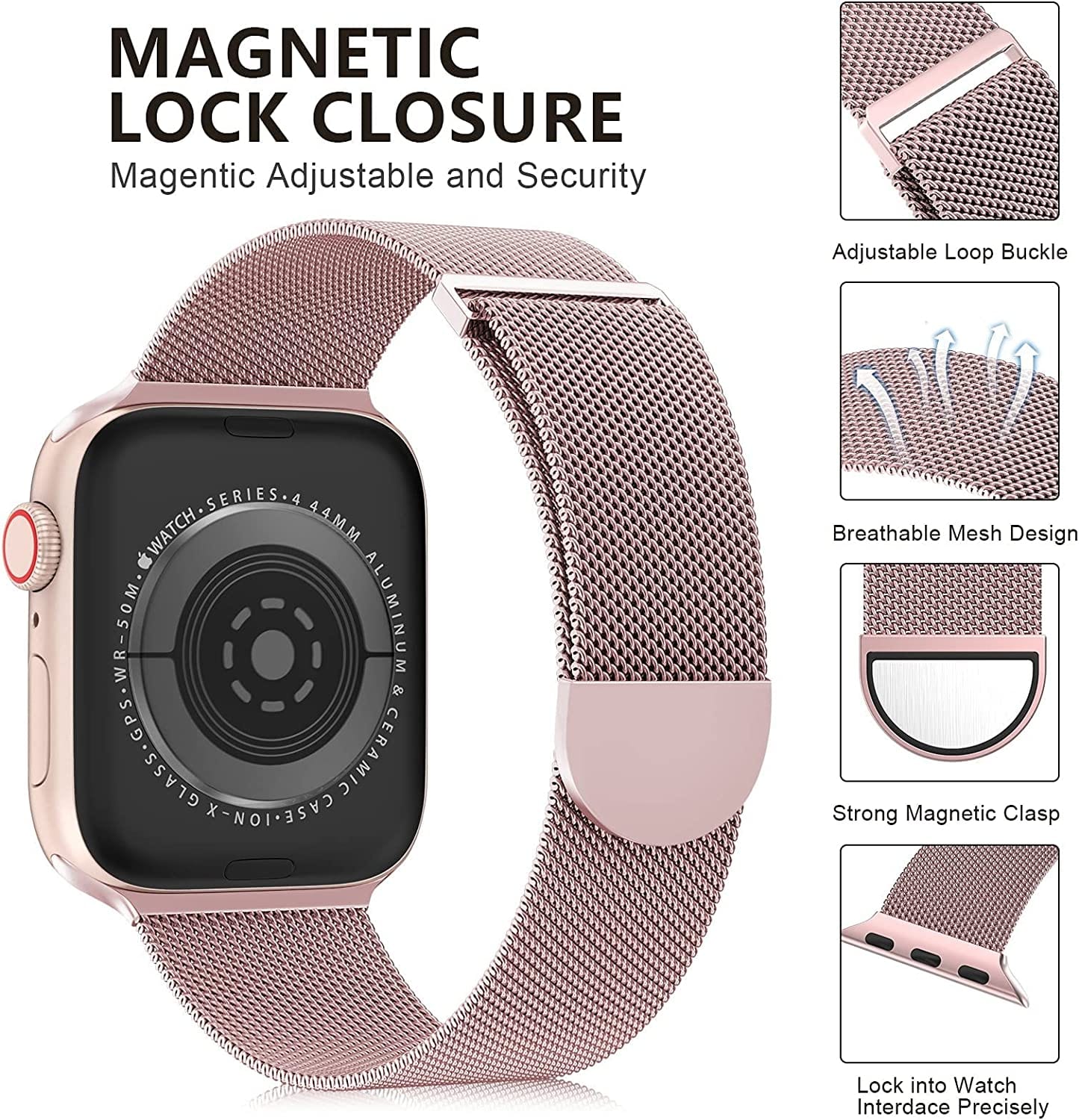 - Apple Watch Band Metallic Magnetic Strap for 38mm / 40mm / 41mm Rose Gold Pink Replacement Women's Strap Clasp Apple iWatch Band Mesh Loop