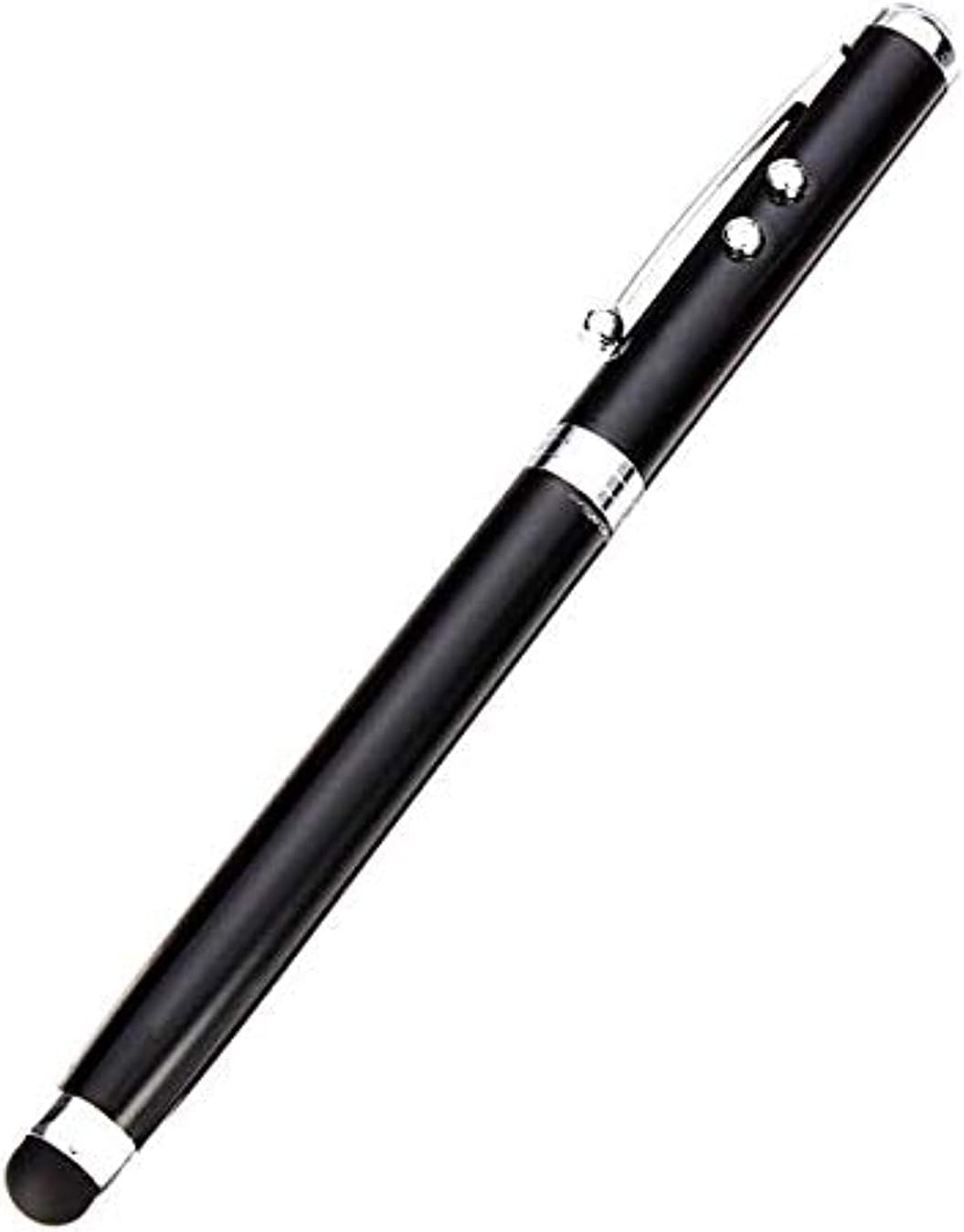 Multifunction Stylus Pen with Ballpoint, Laser Pointer, and LED Light - Black