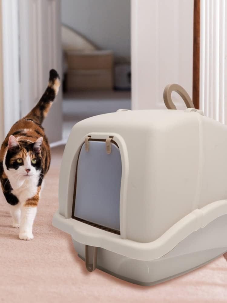 - Large Cat Litter Box, Closed Kitten Toilet Box Pan Hooded Sand Basin Training Set with Scoop and Handle Odor-proof Splash Cat Litter Proof Filter Foot Pedal for Small Medium Large Adult Cats Pet Kitty