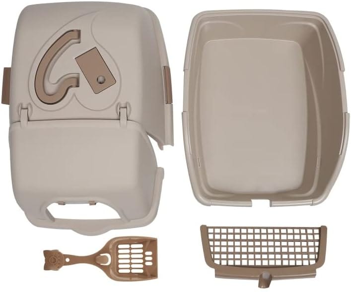 - ORCHID M® Large Cat Litter Box Closed Cat Toilet Box Pan, Large Hooded Sand Basin Training Kit with Scoop Handle for Cats Kittens Fully Enclosed Splash-Proof Easy to Installation and Clean, Fully Enclosed Cat Litter Box Super Large Portable Cat Potty Trainer Anti-Splash Pet Toilet Tray Front Flip Gatos Bedpan with Spade for Larger Cat Breeds Anti Splashing Pet Litter Tray Portable Kitten Potty, Khaki