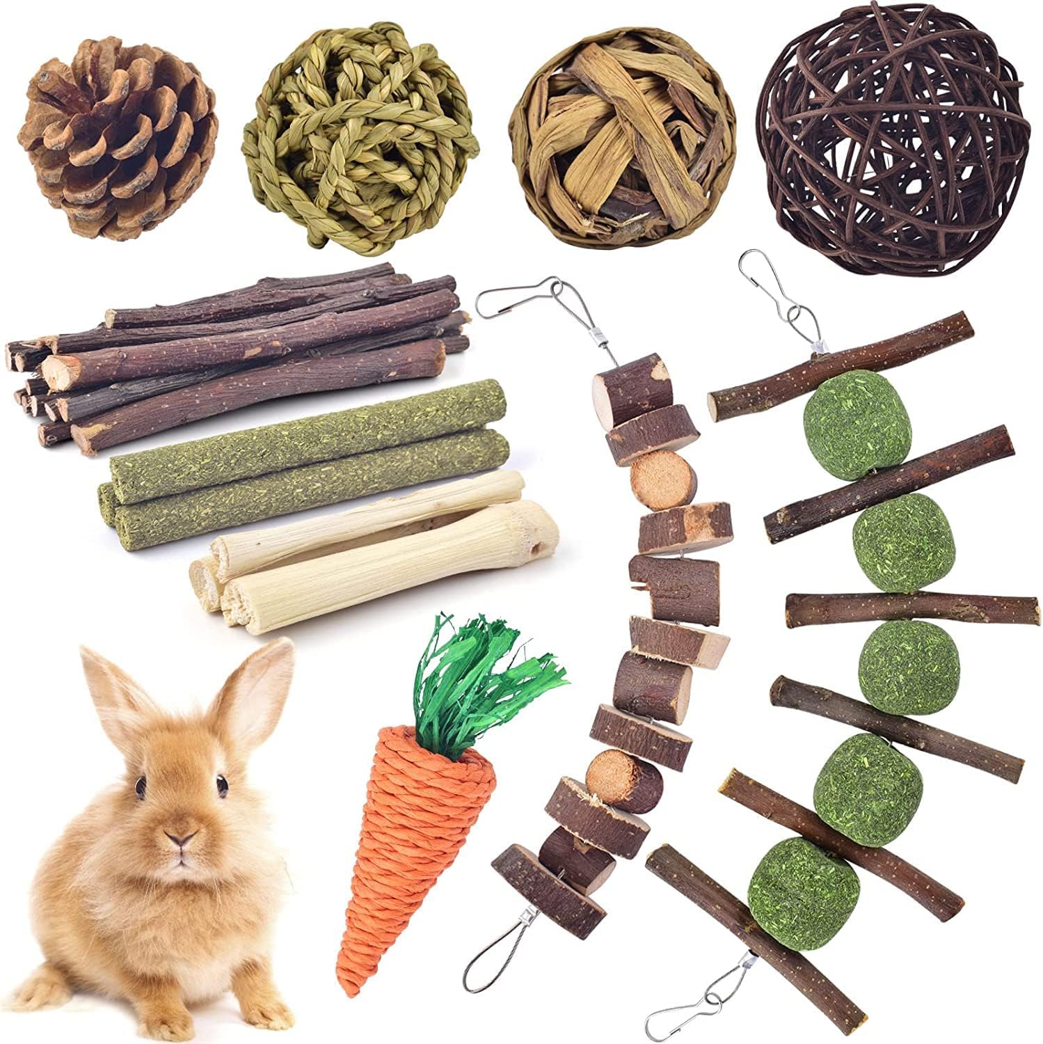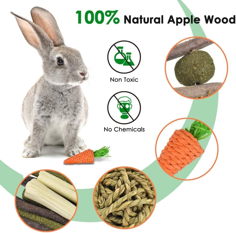 - Safe to Chew: The rabbit chew toys are handmade of 100% natural apple branches, through adequate drying, enough safe and durable, can protect small pets' teeth for healthy growth and play them without any misgivings.